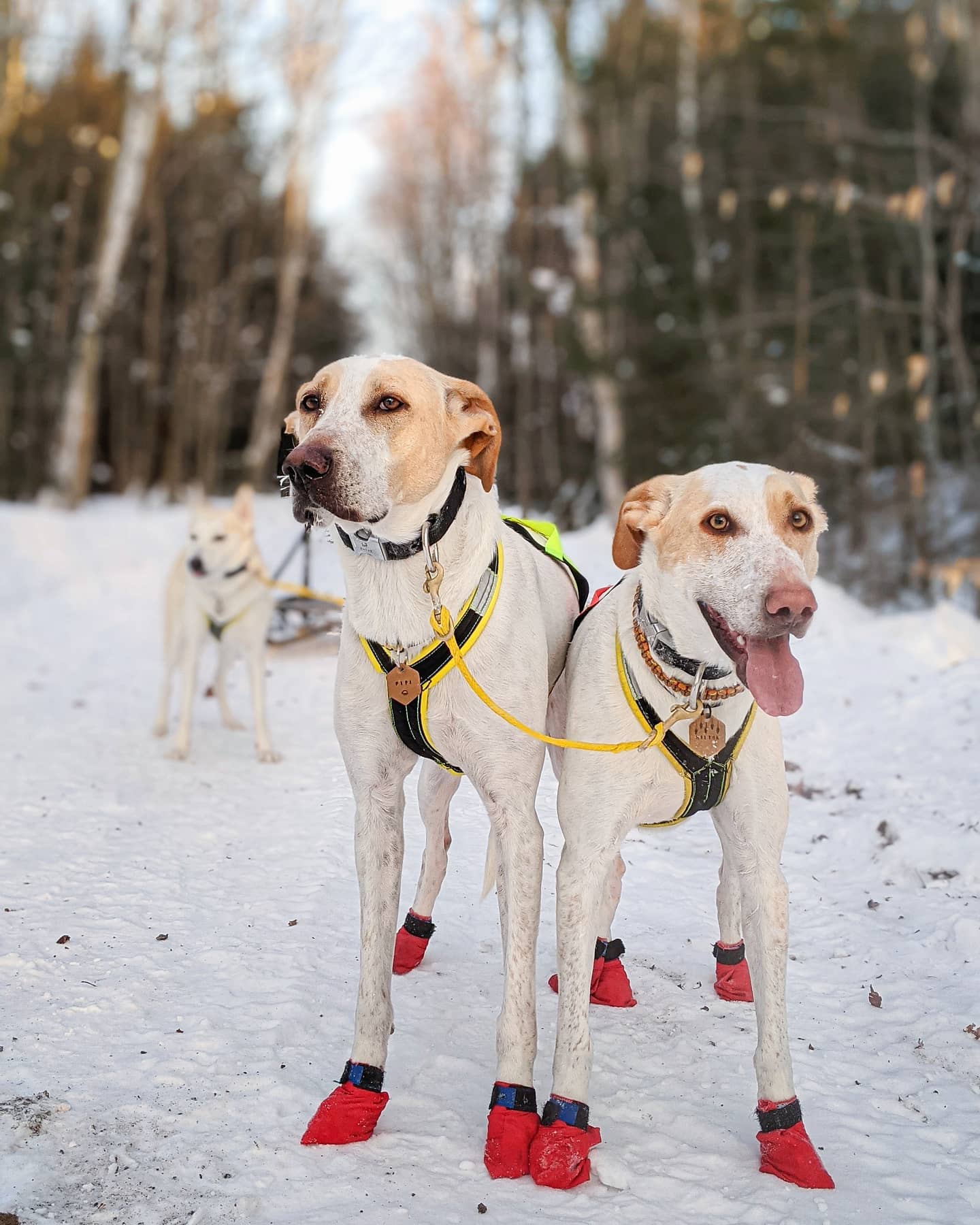 La ligne de cou permet de relier le collier de 2 chiens attelés un à côté de l’autre afin d’éviter qu’ils ne se séparent trop l’un de l’autre.
