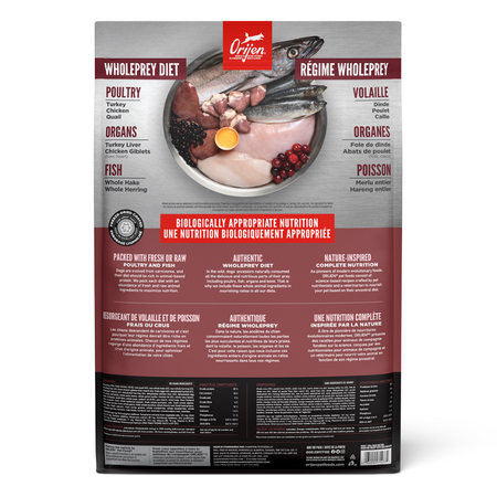 Aidez votre chien à s’épanouir grâce à nos puissantes recettes riches en protéines, pour une alimentation optimale. Votre chien de petite race a certains besoins nutritionnels et nécessite un régime biologiquement approprié pour s’épanouir. Le régime ORIJENMD Petite race est précisément conçu pour les petits chiens. Ses protéines nourrissantes provenant de poulet et de dinde élevés en liberté1, de poisson capturé à l’état sauvage et de caille composent une croquette de forme unique en son genre, plus facile à avaler. Regorgeant d’ingrédients WholePrey d’origine animale frais ou crus2, les nourritures ORIJEN contiennent les parties les plus succulentes et riches en nutriments de la proie, pour offrir aux chiens la nutrition dont ils ont besoin. Grâce à tout cela, votre petit compagnon canin bénéficie d’un régime sans égal.