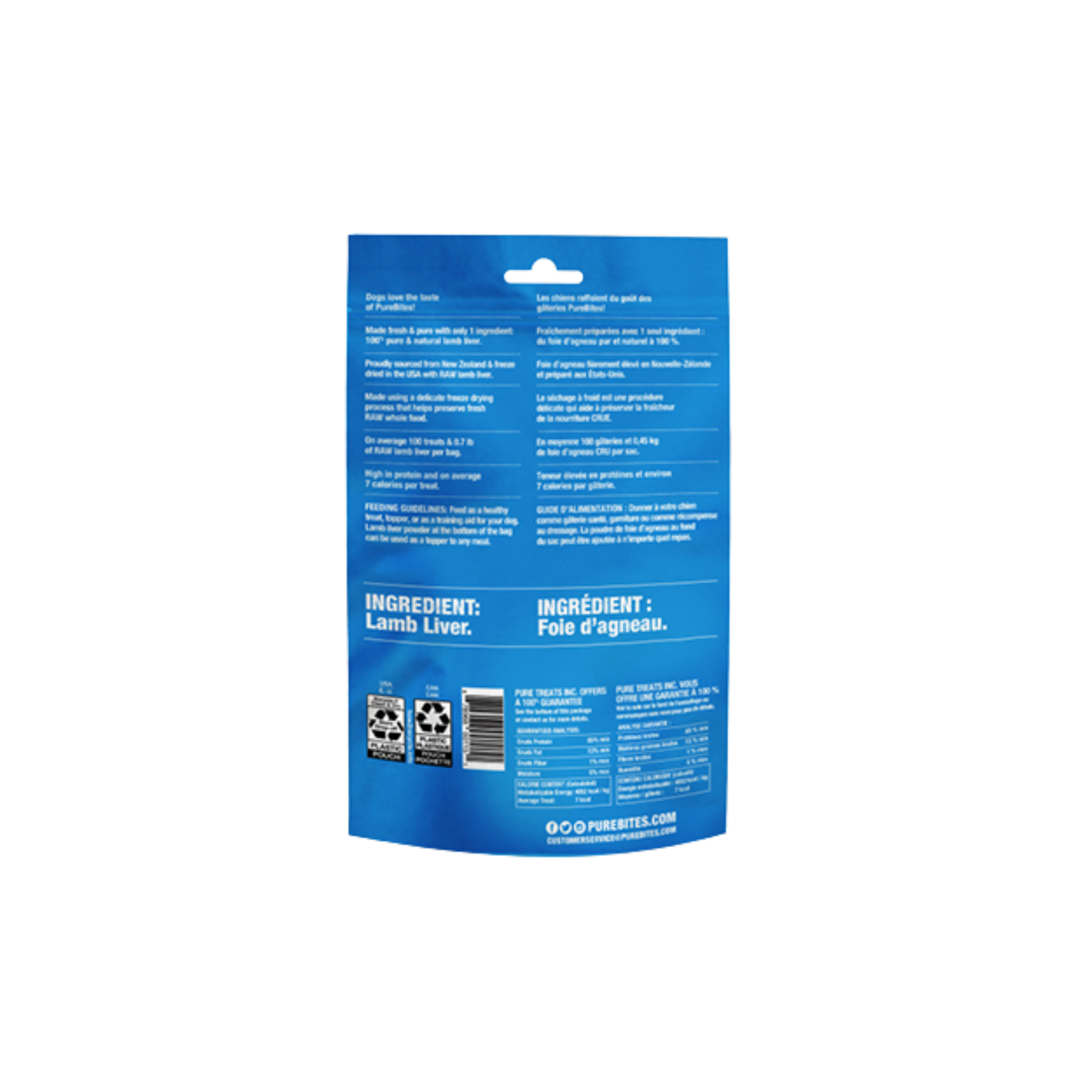Les PureBites® sont composées d’un seul ingrédient : du foie d’agneau 100 % pur de Nouvelle-Zélande, lyophilisé aux États-Unis. Les chiens adorent le goût des PureBites®, car nos friandises sont lyophilisées à l’état cru pour préserver l’arôme, la texture et la fraîcheur dont ils ont tant besoin. Les propriétaires de chiens adorent les PureBites®, car elles sont 100 % pures et riches en nutriments pour une vie heureuse et saine.