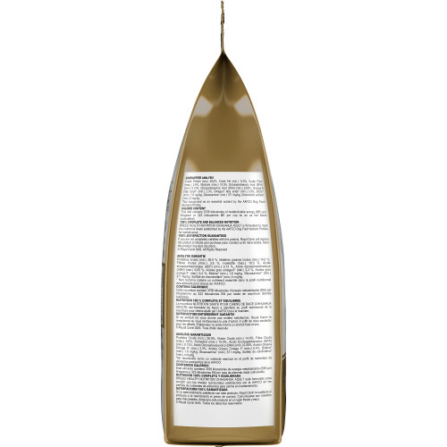 Maïs, farine de sous-produits de poulet, brisure de riz, gluten de blé, gruau d’avoine, riz brun, gras de poulet, arômes naturels, pulpe de betterave ordinaire séchée, huile de poisson, huile végétale, carbonate de calcium, chlorure de potassium, silicoaluminate de sodium, DL-méthionine, fructooligosaccharides, tripolyphosphate de sodium, sel, taurine, vitamines [acétate de DL-alpha-tocophérol (source de vitamine E), inositol, supplément de niacine, L-ascorbyl-2-polyphosphate (source de vitamine C), D-pantothénate de calcium, biotine, chlorhydrate de pyridoxine (vitamine B6), supplément de riboflavine, mononitrate de thiamine (vitamine B1), acétate de vitamine A, acide folique, supplément de vitamine B12, supplément de vitamine D3], chlorure de choline, L-lysine, L-tyrosine, extrait de rose d’Inde (Tagetes erecta L.), L-carnitine, chlorhydrate de glucosamine, oligoéléments [protéinate de zinc, oxyde de zinc, sulfate de fer, protéinate de manganèse, oxyde manganeux, sulfate de cuivre, iodate de calcium, sélénite de sodium, protéinate de cuivre], thé, sulfate de chondroïtine, extrait de romarin, conservé avec un mélange de tocophérols et d’acide citrique.