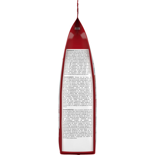 Brisure de riz, farine de sous-produits de poulet, gruau d’avoine, blé, farine de gluten de maïs, gras de poulet, arômes naturels, pulpe de betterave ordinaire séchée, huile de poisson, carbonate de calcium, huile végétale, chlorure de potassium, sel, phosphate monocalcique, chlorure de choline, levure hydrolysée, vitamines [acétate de DL-alpha-tocophérol (source de vitamine E), L-ascorbyl-2-polyphosphate (source de vitamine C), biotine, D-pantothénate de calcium, acétate de vitamine A, supplément de niacine, chlorhydrate de pyridoxine (vitamine B6), mononitrate de thiamine (vitamine B1), supplément de vitamine B12, supplément de riboflavine, supplément de vitamine D3, acide folique], L-lysine, oligoéléments [protéinate de zinc, oxyde de zinc, sulfate ferreux, protéinate de manganèse, oxyde manganeux, sulfate de cuivre, iodate de calcium, sélénite de sodium, protéinate de cuivre], oxyde de magnésium, extrait de romarin, conservé avec un mélange de tocophérols et d’acide citrique.