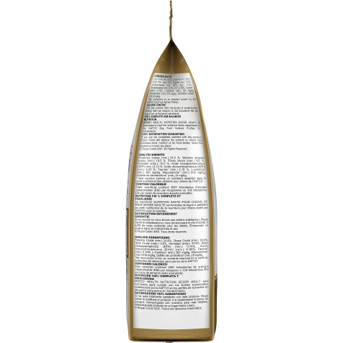 Farine de sous-produits de poulet, brisure de riz, riz brun, gruau d’avoine, gras de poulet, gluten de blé, farine de porc, arômes naturels, pulpe de betterave ordinaire séchée, huile de poisson, fibre de pois, huile végétale, huile de noix de coco, silicoaluminate de sodium, phosphate monocalcique, chlorure de potassium, carbonate de calcium, enveloppes de psyllium, sel, fructooligosaccharides, tripolyphosphate de sodium, taurine, levure hydrolysée, L-lysine, DL-méthionine, vitamines [acétate de DL-alpha-tocophérol (source de vitamine E), inositol, supplément de niacine, L-ascorbyl-2-polyphosphate (source de vitamine C), D-pantothénate de calcium, biotine, chlorhydrate de pyridoxine (vitamine B6), supplément de riboflavine, mononitrate de thiamine (vitamine B1), acétate de vitamine A, acide folique, supplément de vitamine B12, supplément de vitamine D3], chlorure de choline, chlorhydrate de glucosamine, extrait de rose d’Inde (Tagetes erecta L.), L-carnitine, oligoéléments [protéinate de zinc, oxyde de zinc, sulfate de fer, protéinate de manganèse, oxyde manganeux, sulfate de cuivre, iodate de calcium, sélénite de sodium, protéinate de cuivre], sulfate de chondroïtine, extrait de romarin, conservé avec un mélange de tocophérols et d’acide citrique.